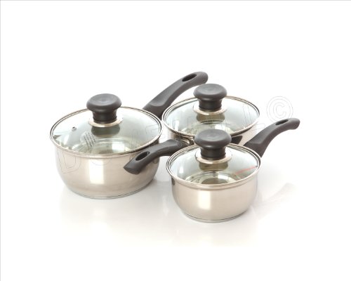 Buy Dove Mill - Super Value Stainless Steel Kitchen Saucepan Cookware Set W / Glass Lid - 3 Pieces Discounted